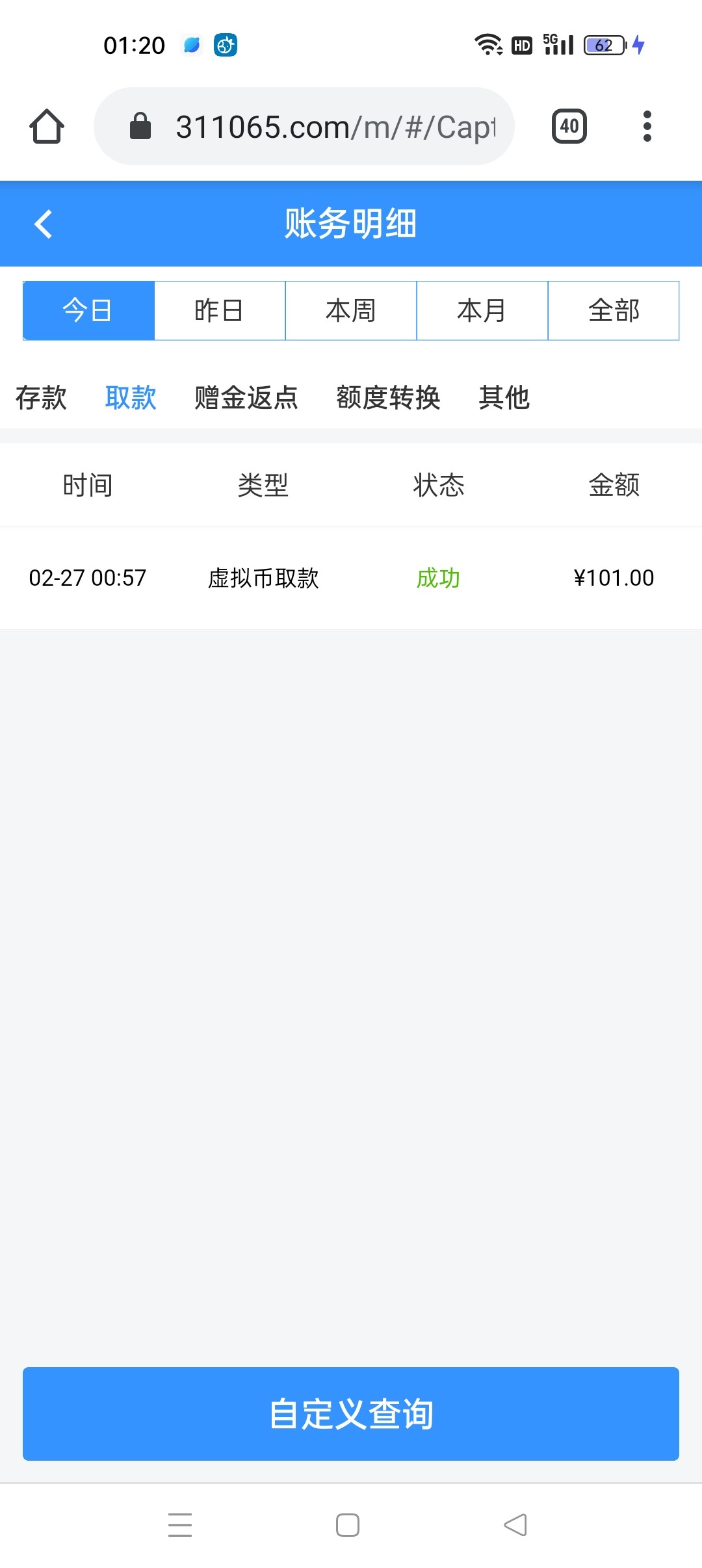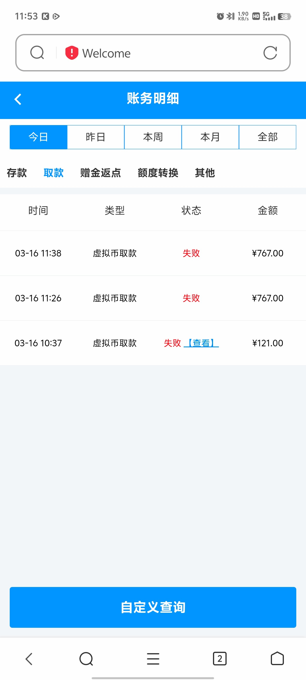 没充过,提款110给了