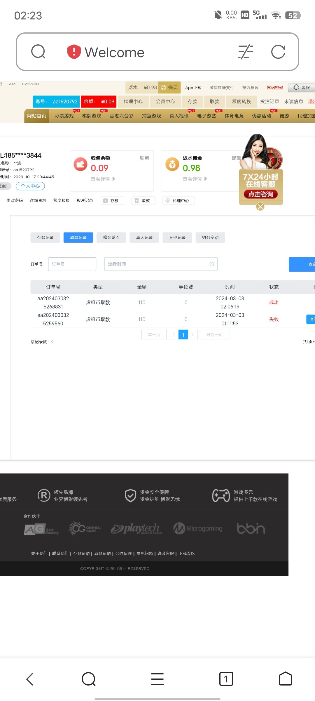 一直在 pg1 玩 领了几千彩金了 这两个月还赢了 6k 多 我好像还是走的你的链接账号pg1415789 你看是不是