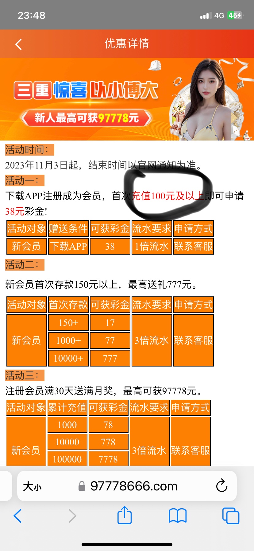 要充值100才有