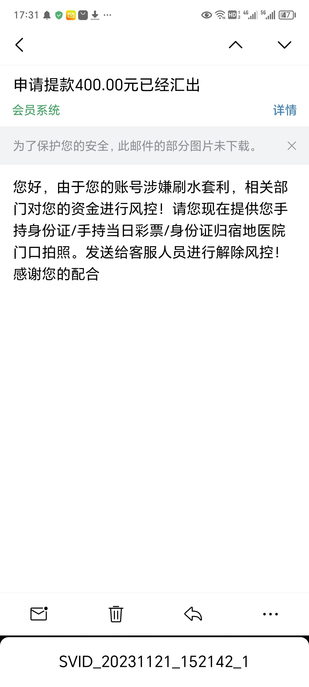 看到提现到账,结果钱没到,空汇,