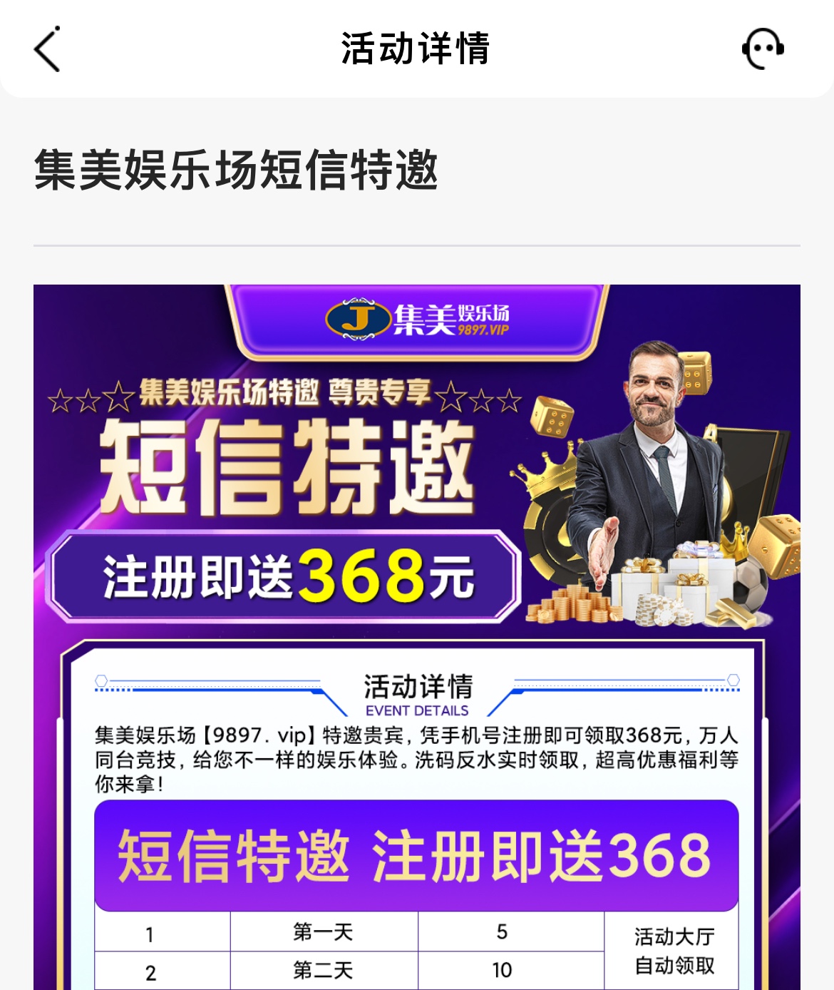 短信特邀送15分两天送第一天送5第二天送10,这种模板都黑能不能出全凭运气,活动大厅申请