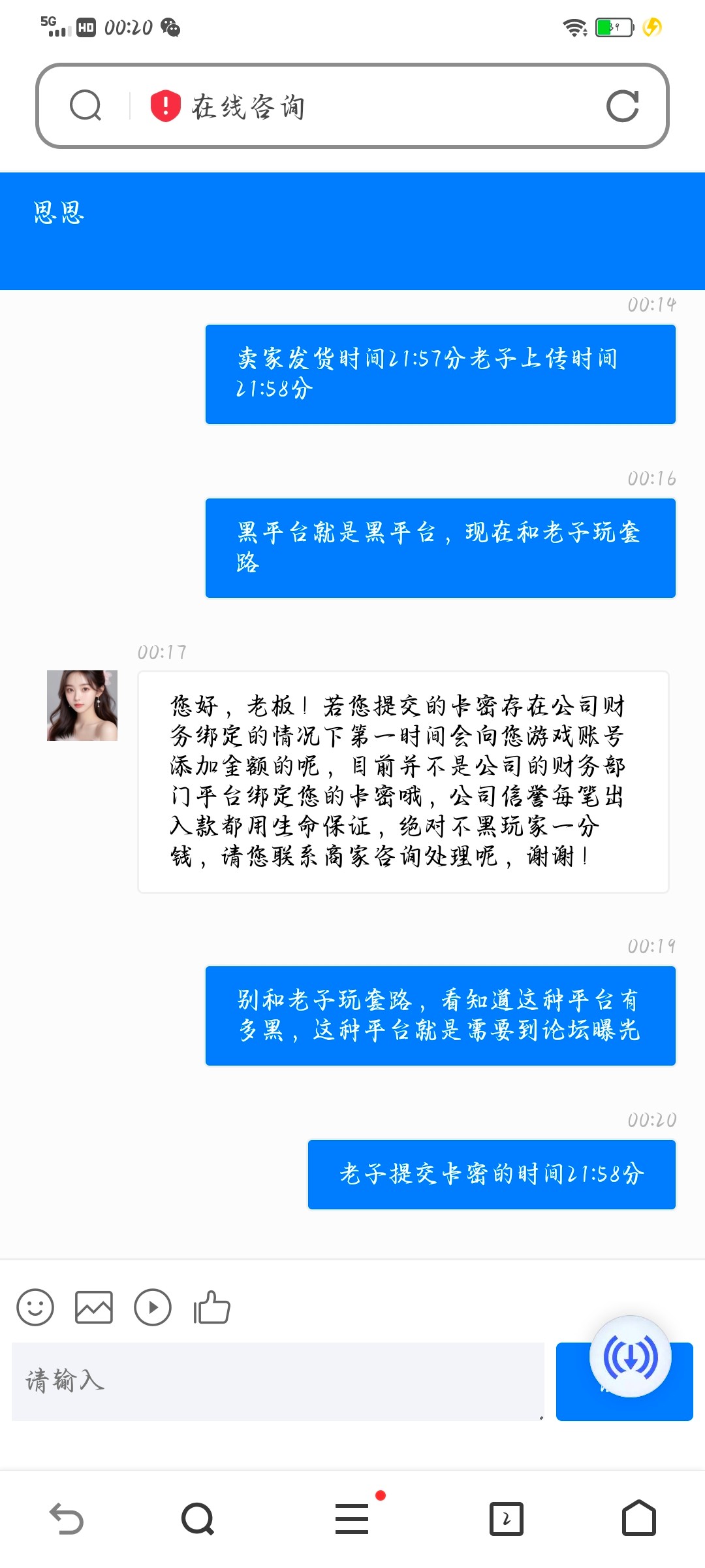 50快钱卡密充值不给到账客服还不会回复信息,直接查不到卡米信息